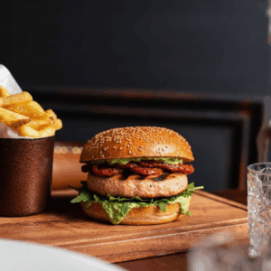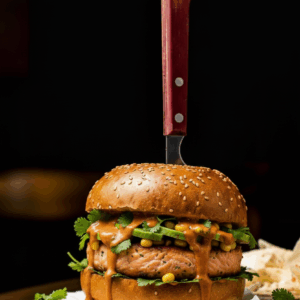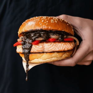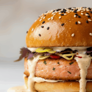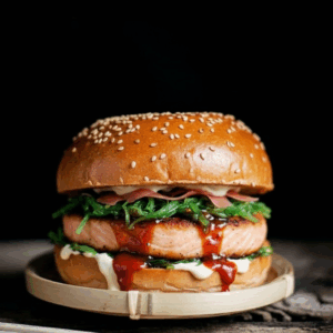 Burger de salmón: Pescado, puede contener trazas de moluscos y crustáceos.